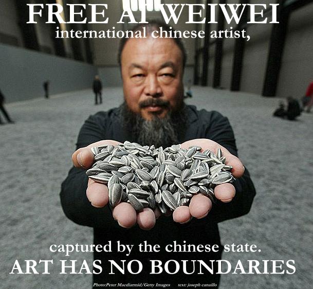 - contact friends in HK, both lawyers, to ask if they can research and ascertain or establish the legal status of Ai Weiwei – he was detained by Chinese authorities and imprisoned while trying to board a flight from Beijing to HK in April of this year, ideally en route to the sunflower seed installation in London’s Tate Modern. Subsequently released, but under very tight supervision